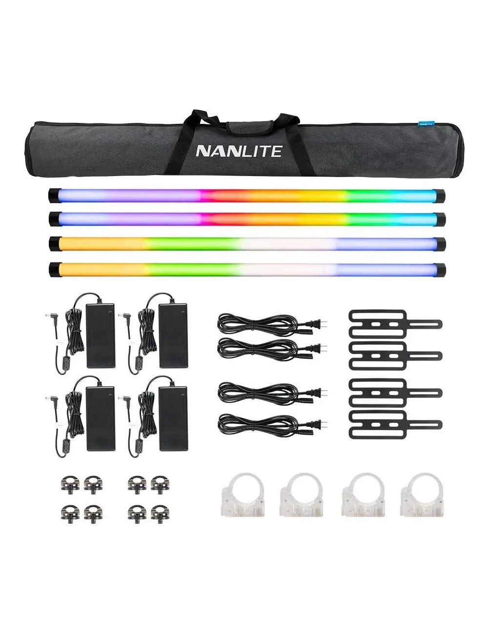 Con quattro luci LED multifunzione a effetto colorato a forma di tubo. Offrono luce bianca e luce colorata, oltre a effetti speciali, tra cui effetti segmentati. Controllo diretto o telecomando tramite Bluetooth, radio o DMX/RDM. Funzionamento a rete elettrica o a batteria con batteria agli ioni di litio integrata, per un impiego mobile e indipendente dalla rete elettrica. Numerose opzioni di montaggio e movimentazione. Include alimentatore/caricabatterie, accessori di montaggio e custodia imbottita per il trasporto.