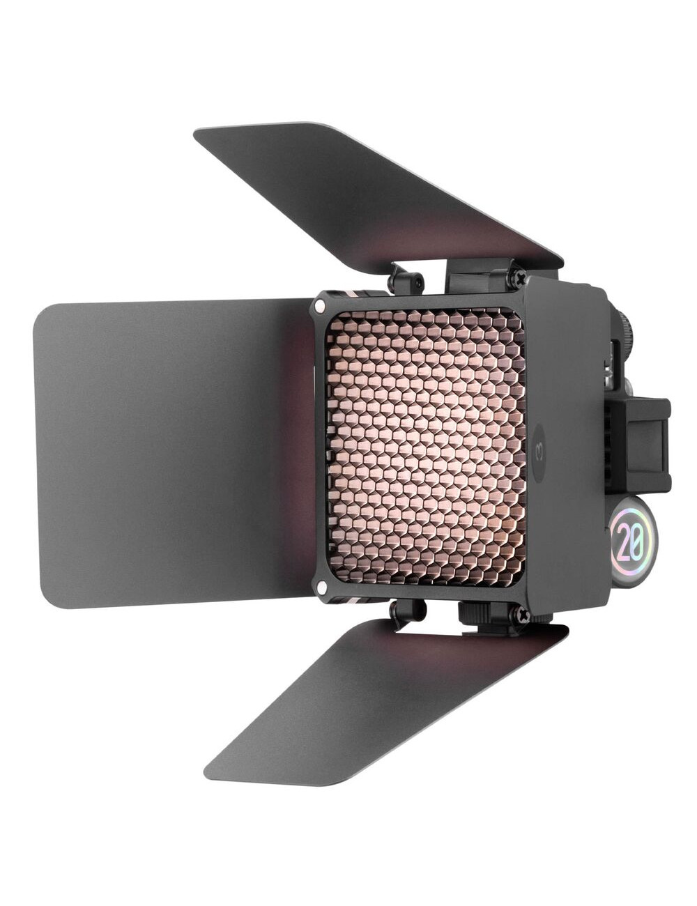 La ZHIYUN Fiveray M20 è una luce integrata nella fotocamera ricca di funzionalità e facile da usare. La sorgente luminosa a LED compatta ha una potenza massima di 20 W. Questa combinazione include la luce, il supporto di estensione, il cavo di ricarica PD, le alette a 4 ante, le griglie a nido d'ape, un diffusore e una custodia. La lampada a LED ha una funzione dimmer separata dallo 0 al 100% e un'autonomia fino a 40 minuti alla massima luminosità. La batteria integrata si ricarica completamente in circa due ore utilizzando il cavo di ricarica PD incluso.
