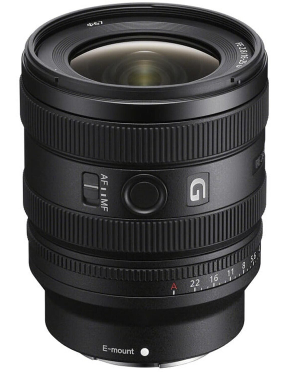 Montatura obiettivo Sony E - Compatibile con tipo di sensore Full-frame - zoom regolabile - Stabilizzatore di immagine - Intensità luminosa 2,8 - Lunghezza focale 16 - 25 mm - Messa a fuoco autofocus - Diametro del filtro 67 mm